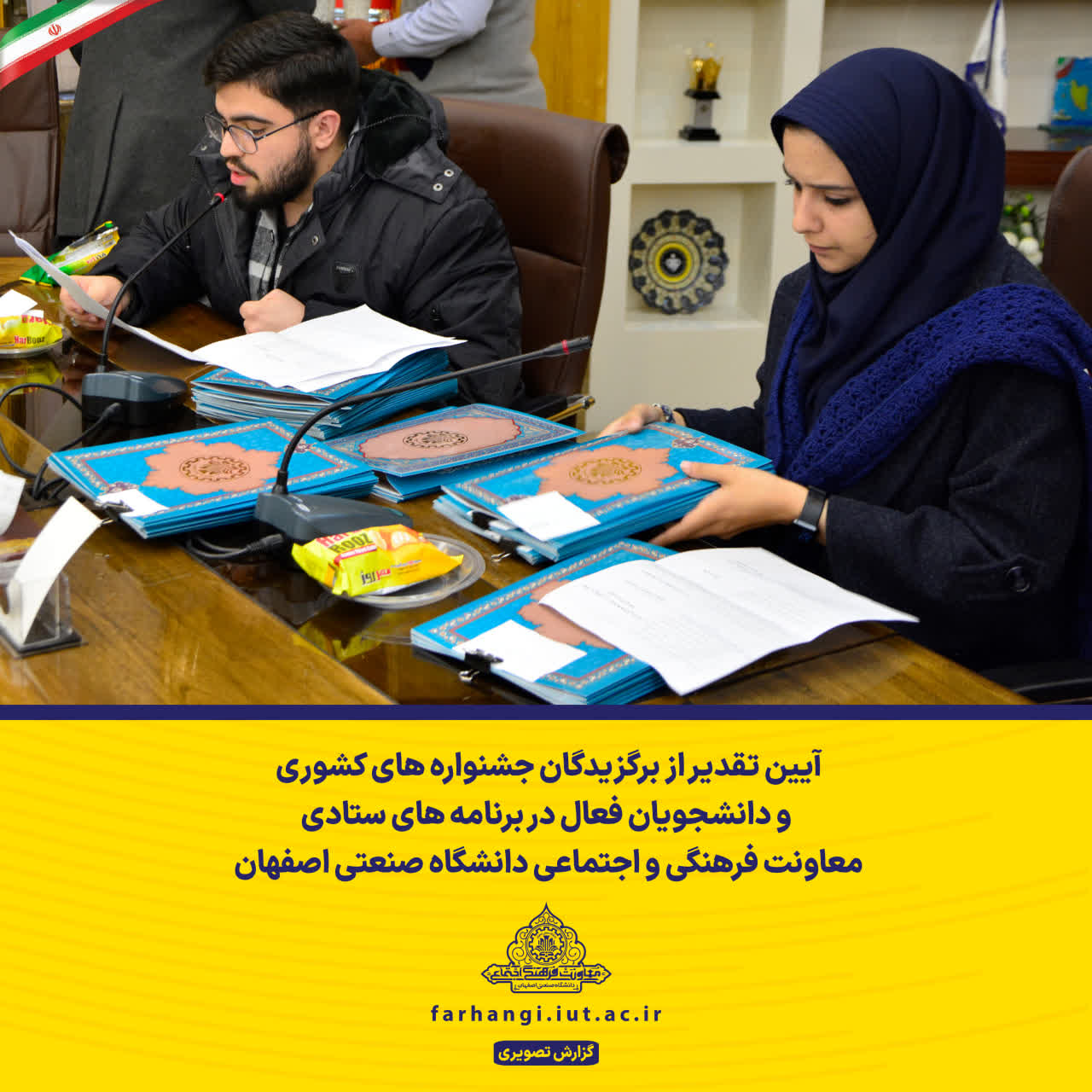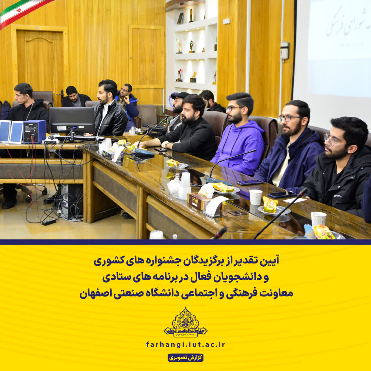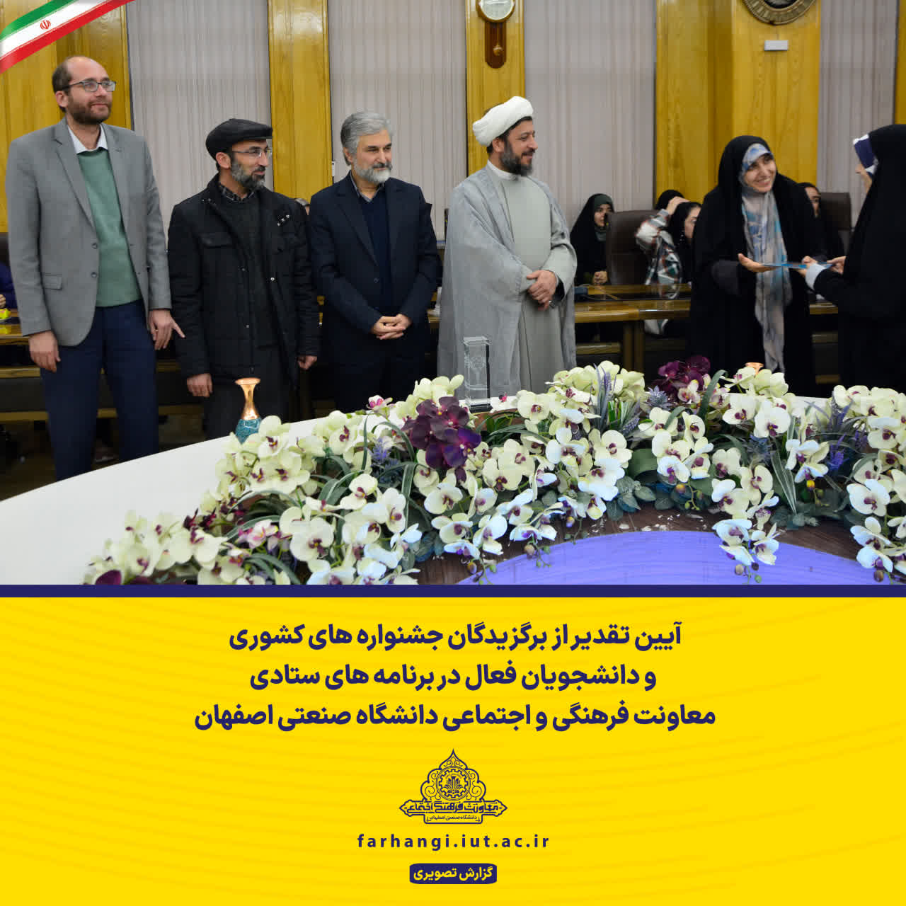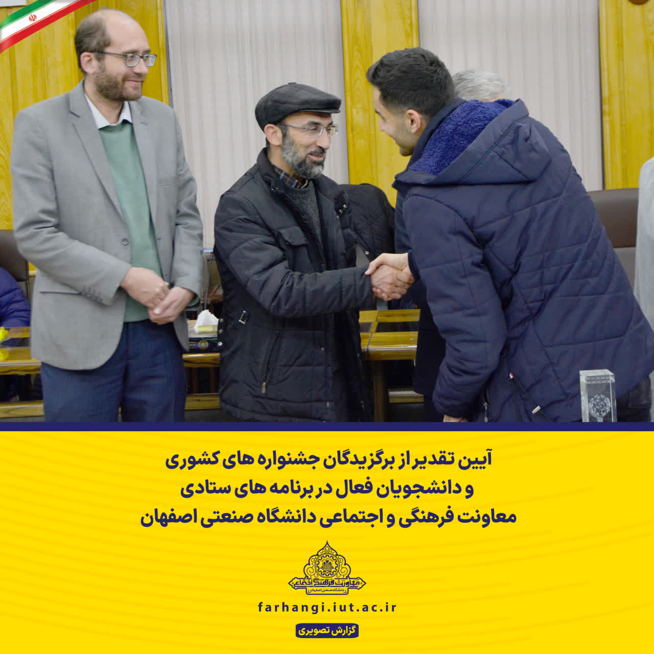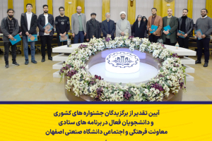 آیین تقدیر از برگزیدگان جشنواره های کشوری و دانشجویان فعال در برنامه های ستادی معاونت فرهنگی و اجتماعی دانشگاه صنعتی اصفهان برگزار شد